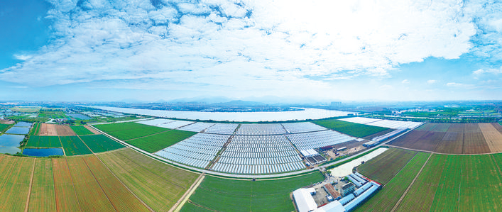 在惠州仲愷高新區潼湖鎮,合利菜場的連片溫室大棚在藍天白云下熠熠生輝。時下正值冬種繁忙時節,這里的農田里滿是勞作的身影,各類蔬菜在標準化的種植模式下蓬勃生長。作為粵港澳大灣區重要的“菜籃子”供應基地之一,合利菜場的蔬菜不僅供應廣州、深圳等城市,還源源不斷地輸往香港、澳門。從空中俯瞰,規整的農田、現代化的溫室大棚與周邊的水系、遠山相映成趣,勾勒出一幅現代農業與自然景觀交融的美麗畫卷。惠州日報記者鐘暢新 攝