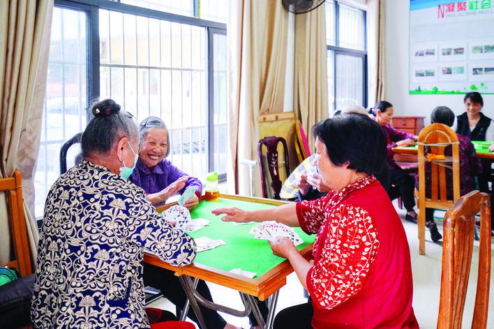 改造后的群芳苑里,老人們在老人活動中心打牌娛樂。惠州日報記者湯渝杭 攝