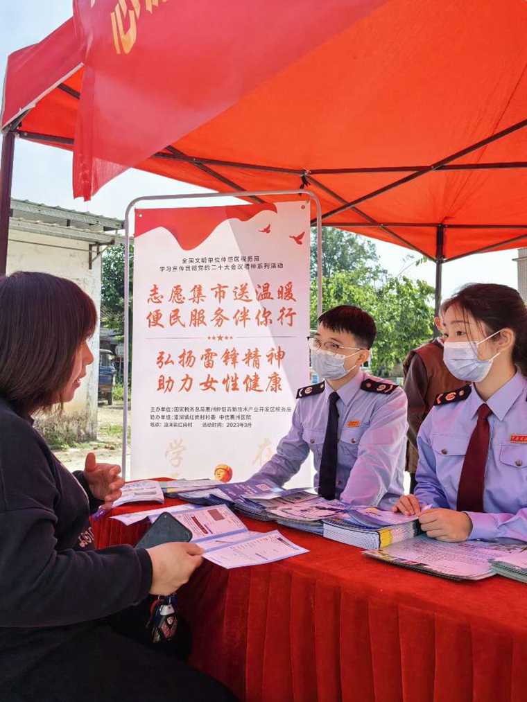為深入學(xué)習(xí)貫徹黨的二十大精神,積極培育和踐行社會主義核心價值觀,大力弘揚(yáng)雷鋒精神,近日,國家稅務(wù)總局惠州仲愷高新技術(shù)產(chǎn)業(yè)開發(fā)區(qū)稅務(wù)局(以下簡稱“仲愷區(qū)稅務(wù)局”)聯(lián)合潼湖鎮(zhèn)紅崗村村委、中信惠州醫(yī)院在潼湖鎮(zhèn)紅崗村開展“志愿集市送溫暖 便民服務(wù)伴你行”暨“弘揚(yáng)雷鋒精神 助力女性健康”學(xué)雷鋒志愿服務(wù)系列活動,匯聚力量助力鄉(xiāng)村振興。