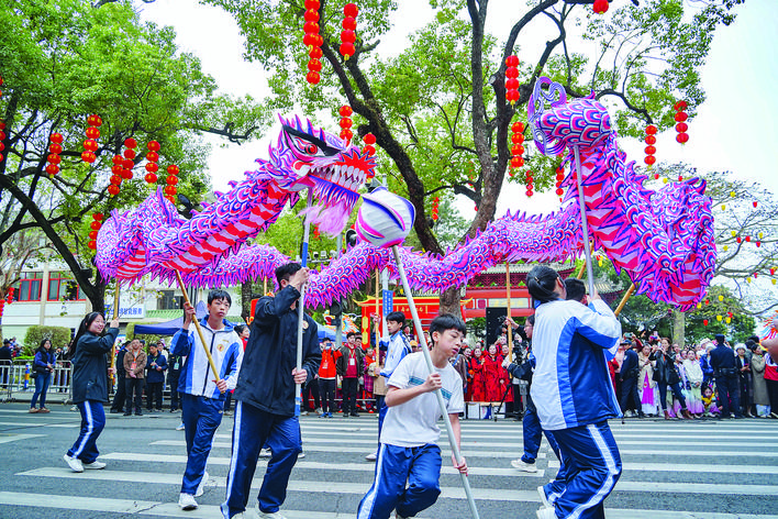 “我們學校十分注重中華優秀傳統文化的傳承,舞龍就是我們的一門必修課。”香港天主教鳴遠中學初二學生雷靜汶告訴記者,舞龍在香港不僅是表演項目,在近年來更是深入學校和社區,成為市民強身健體的運動,越來越多的香港青年加入舞龍隊伍,感受團結、奮進、樂觀與勇毅的團隊精神。她所在的舞龍隊成立于一年前,這是首次到內地演出。“一開始,我對舞龍并不是很了解,只在短視頻和街頭看過,參與進來以后便感受到了這一運動的魅力。本次活動有很多‘龍’來到現場,對我們來說也是一次對中華優秀傳統文化的學習。”
