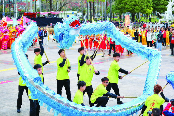 本次活動中,香港澳門的舞龍代表隊也受邀來到了現場。